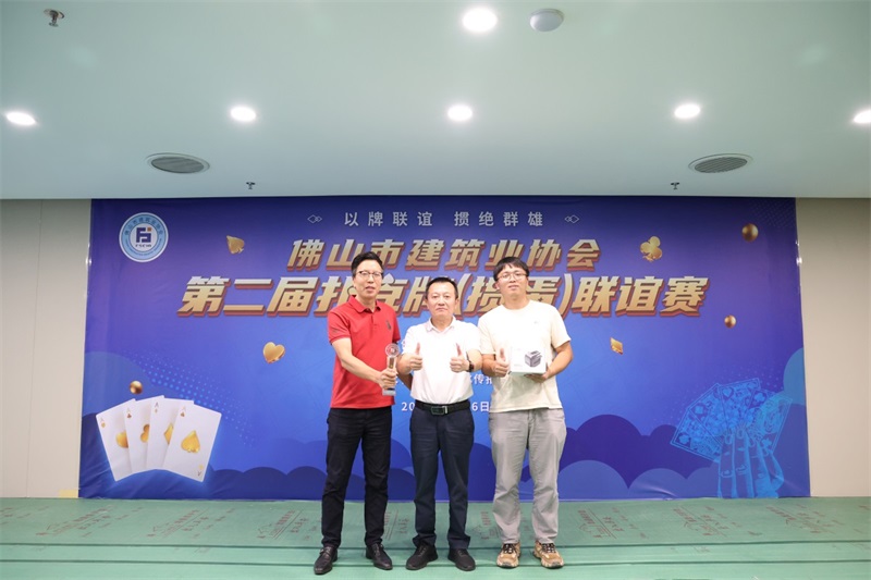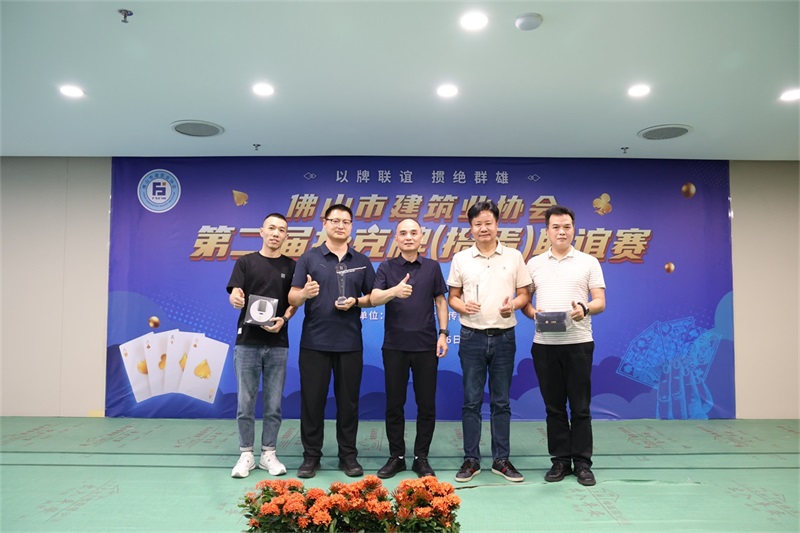 经过多轮智慧与运气的激烈碰撞,最终佛水建设代表队凭借精湛牌技与默契配合,摘得本届赛事桂冠,省六建一队、佛电院二队分获亚军及季军,世纪达一队、世纪达三队、省构建一队则获得优胜奖。各获奖队伍在颁奖环节中从颁奖嘉宾——我会会长魏琼升及副会长黎智惠的手中接过象征荣誉的奖杯与独具匠心的纪念礼品。