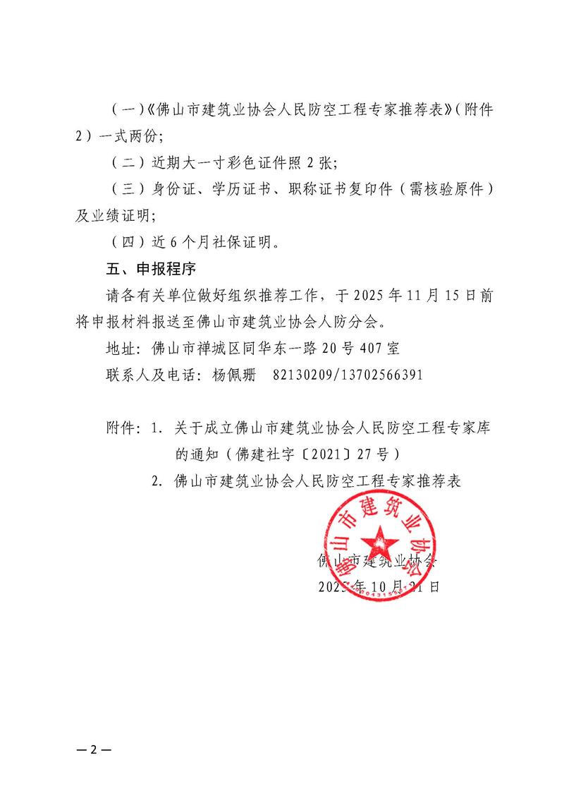 关于更新佛山市建筑业协会人民防空工程专家库专家信息及开展增补入库工作的通知(2025/10/22)
