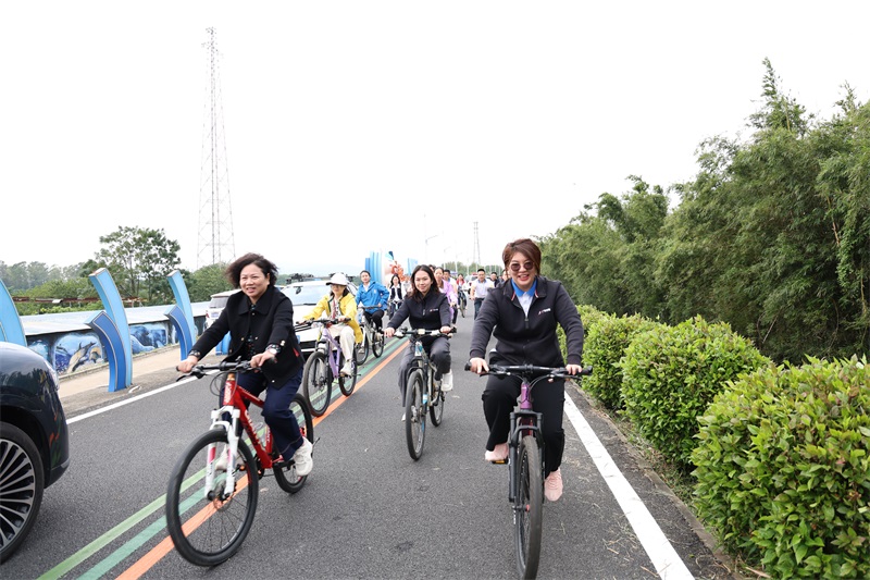 藉此良辰美景,嘉宾们都欢欣雀跃地参与到环岛骑行中,大家骑着自行车从海寿村委出发,沿着海寿堤围骑行,享受着眼前环两江自行车赛道的风景,感受海寿人情风貌。