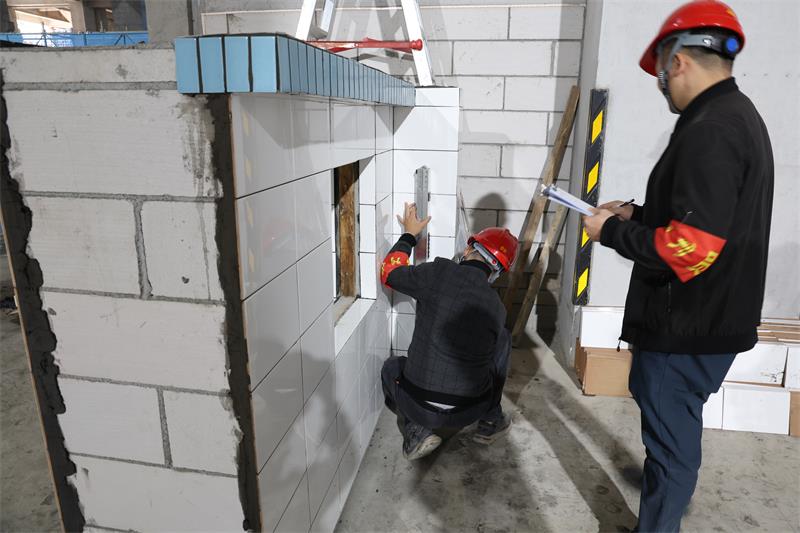 虽然看上去都是基础的砌筑施工,但往往最基础的东西就是最能考验工匠们扎实的手艺,除了从墙砖平整度、墙砖垂直度、阴阳角的偏差与观感上下功夫,确保挑檐鹰嘴符合坡度要求,还必须最大限度地保证墙砖接缝高低差、瓷砖缝宽度按照要求施工,每一个动作都得精准而熟练,真算得上“失之毫厘”,分数就“差之千里”了!