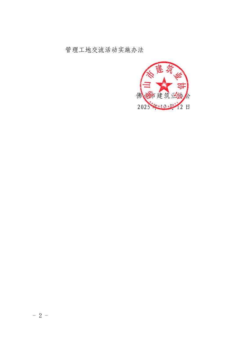 关于修订并公布《佛山市建筑业协会房屋市政工程施工安全规范化管理工地交流活动实施办法》的通知(佛建社字〔2025〕29号)