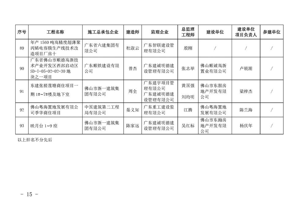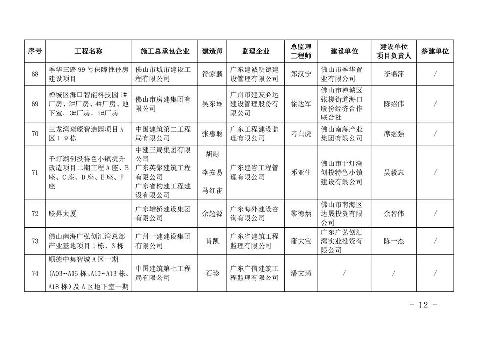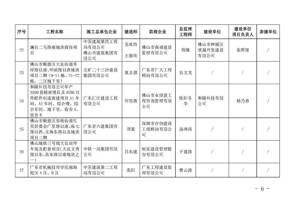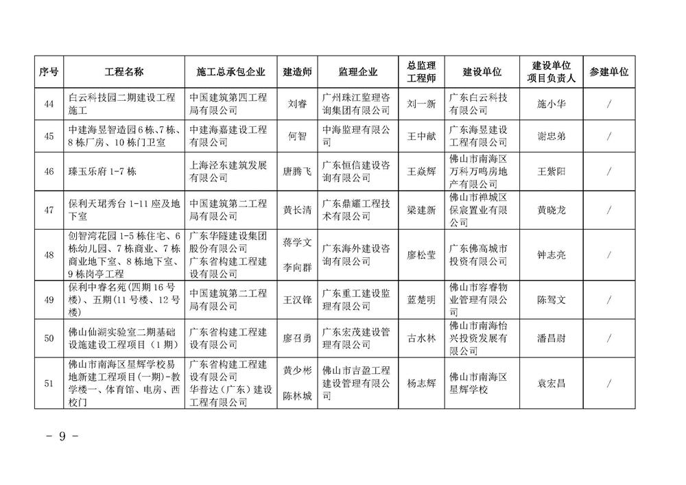 2025年佛山市建筑业协会房屋市政工程施工安全规范化管理交流工地(第二批)名单
