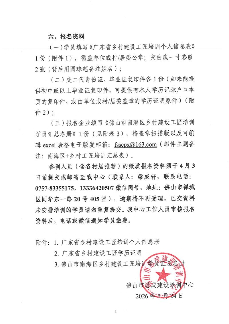 关于举办2026年广东省乡村建设工匠培训班(第2期)的通知(2026/03/24)