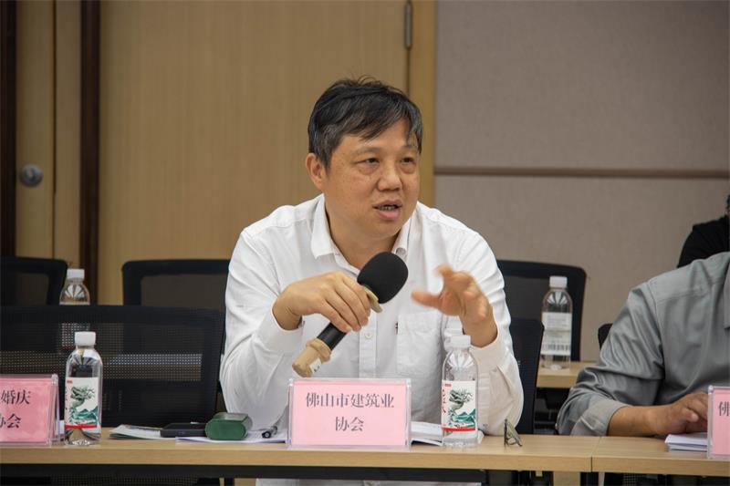 观摩活动结束后,与会代表与九江、丹灶、西樵等镇的相关负责人进行了座谈交流。在交流环节姚毅文首先发言,他汇报了我会及会员企业近几年积极投身“百县千镇万村高质量发展工程”的情况,并重点介绍了广东雄桥建设集团有限公司与广东省、佛山市两建筑业协会共同结对帮扶,在海寿岛打造的环两江自行车赛道改造提升、海寿岛风貌提升工程,该项目还成为2025年度广东省建筑业企业投身“百县千镇万村高质量发展工程”范例,在环两江建设征程上起了积极的带头作用。姚毅文表示,在本次联学共建活动后,市建筑业协会将为环两江建设做好宣传、发动工作,带领会员企业选择合适的产业、项目参与其中,为城乡高质量融合发展发挥作用。