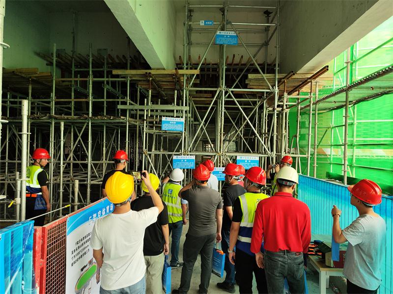 本次观摩会主要展示承插型盘扣式钢管脚手架及高大支模体系,以此直观地反映项目工地安全文明标准化施工水平。承插型盘扣式脚手架新技术的推广运用,能有效提高施工防护设施工具化、定型化、标准化,对于安全文明示范工地的创建起到积极作用。
