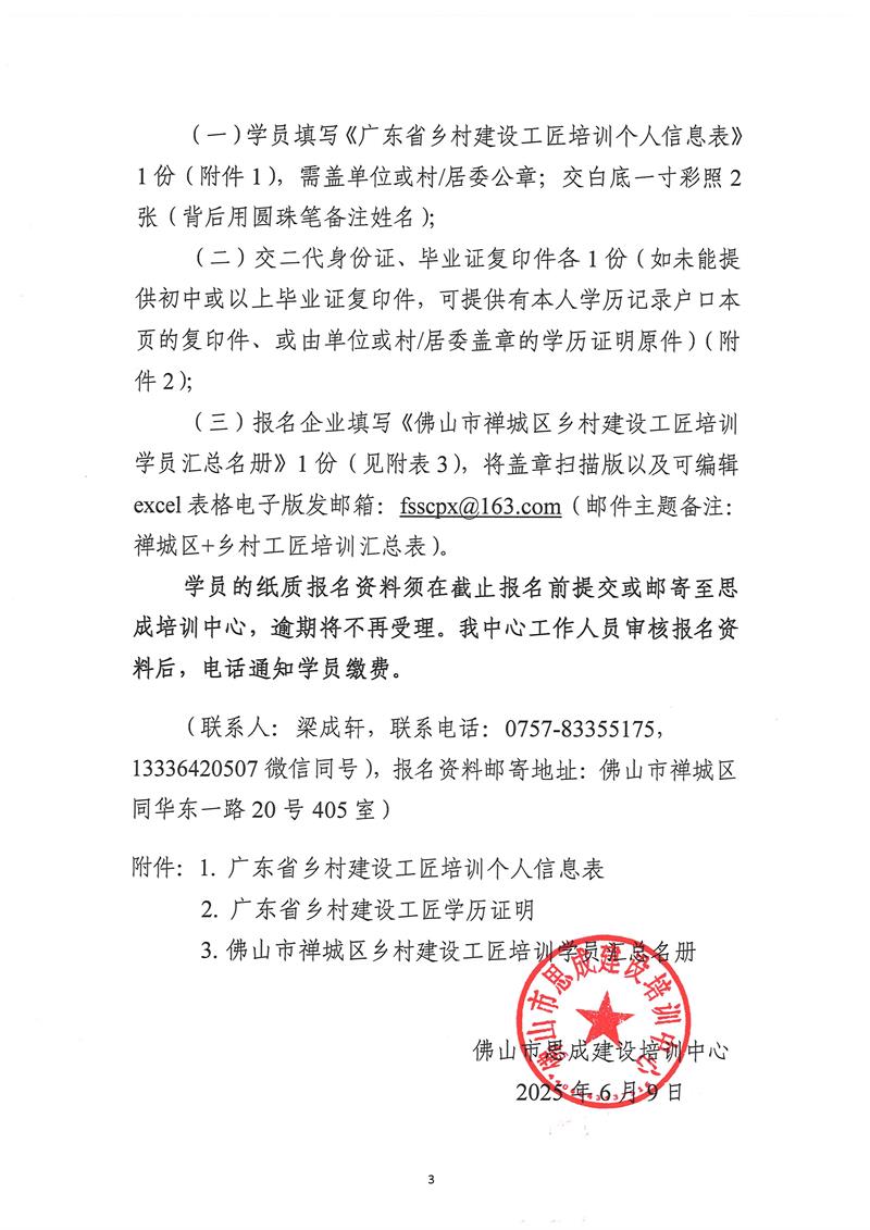 佛山市禅城区乡村建设工匠培训学员汇总名册