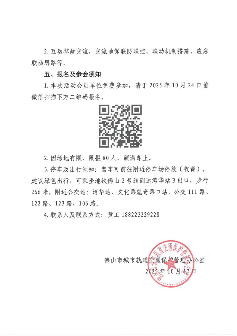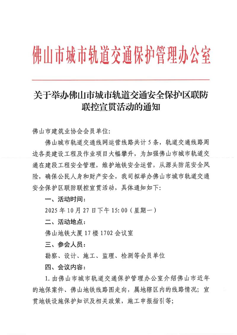 转发关于举办佛山市城市轨道交通安全保护区联防联控宣贯活动的通知(2025/10/20)