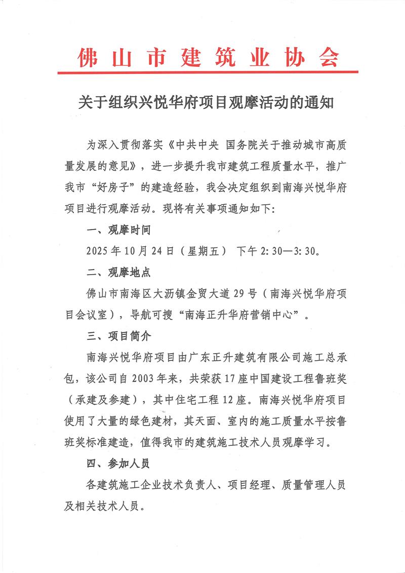 关于组织兴悦华府项目观摩活动的通知(2025/10/21)