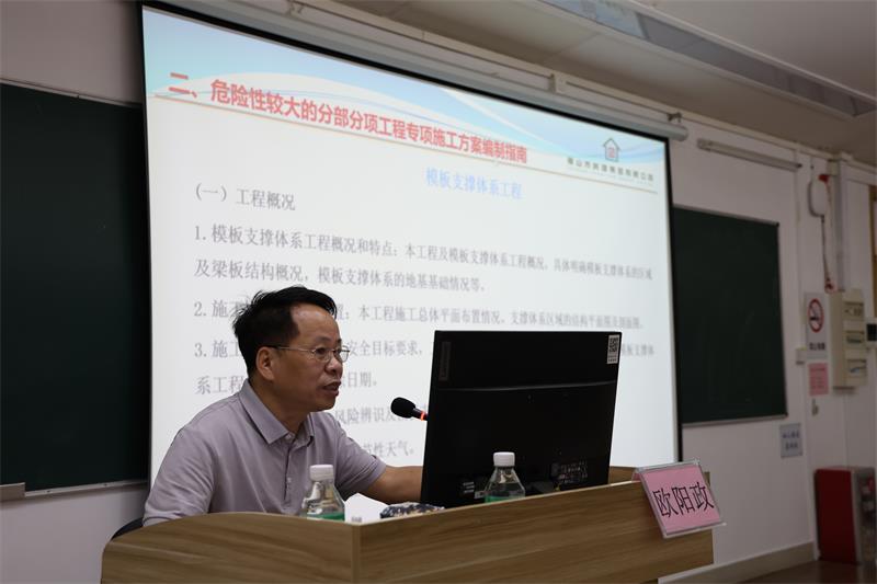 随后,我会邀请了“危大”专家库资深专家、佛山市房建集团有限公司的欧阳政总工程师对“危大”专项方案评审要点做了解析,欧阳总通过相关的案例分析,让候选专家对方案评审论证工作有了更深入的认识和了解。