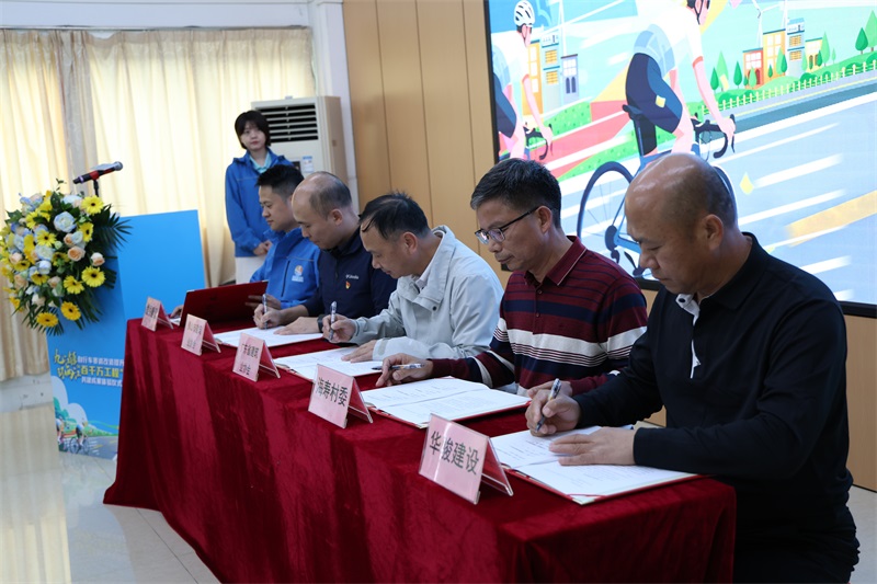 10月23日,秋风送爽,碧波荡漾。九江镇环两江自行车赛道改造提升“百千万工程”共建成果体验仪式在南海区九江镇海寿小学礼堂隆重举行。海寿村党委书记区发洪、省建协秘书长郑顺炽、市建协党支部书记、秘书长雷毅文、广东华骏董事长黄伟华、广东雄桥执行董事兼总经理余超源共同进行了简单而隆重的战略合作框架协议签约仪式。随后,参与各方开展座谈交流,围绕共建内容、环两江自行车赛道建设意义及环两江自行车赛举行的意义进行详细研讨。