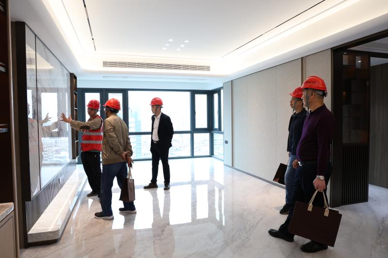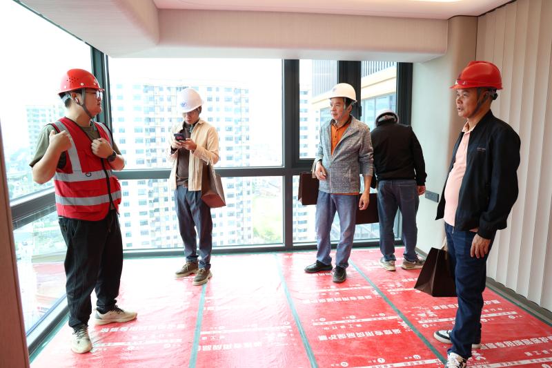 观摩南海兴悦华府项目现场亦是本次会议的主要内容,该项目由广东正升建筑有限公司承建,严格遵循“鲁班奖”质量标准。观摩项目集中展示了多项高标准建造亮点:在绿色建材与工艺方面,项目采用了LOW-E双层中空玻璃、高强度薄抹灰砂浆以及1200*2400mm大尺寸岩板通铺等材料、“屋面工程细部处理施工工法”等技术,其屋面及室内施工质量均达到国家级水准,体现了现代“好房子”的品质追求。同日下午,协会还组织了建筑施工企业技术负责人、项目经理、质量管理人员及相关技术人员对该项目进行观摩学习。