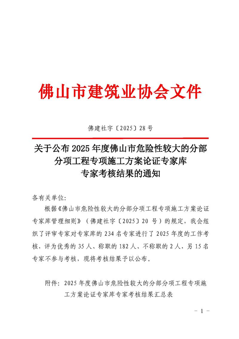 关于公布2025年度佛山市危险性较大的分部分项工程专项施工方案论证专家库专家考核结果的通知(佛建社字〔2025〕28号)