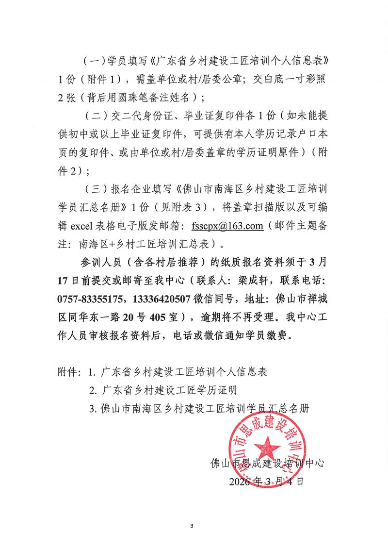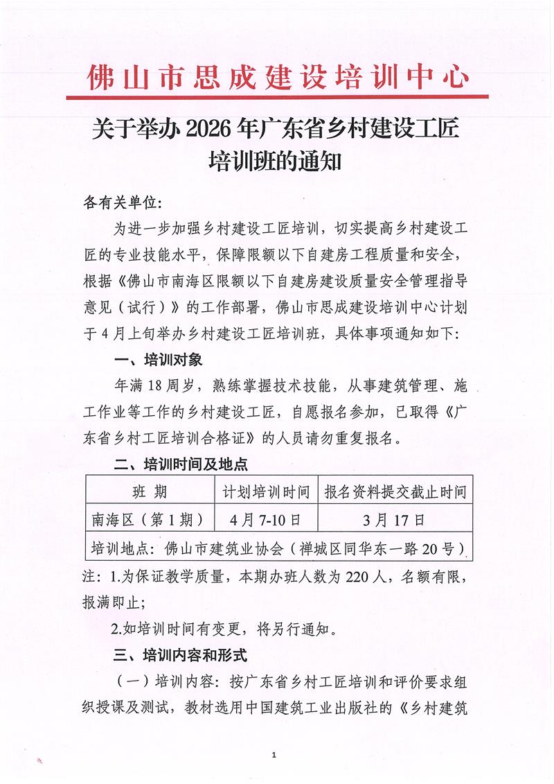 关于举办2026年广东省乡村建设工匠培训班的通知(2026/03/04)