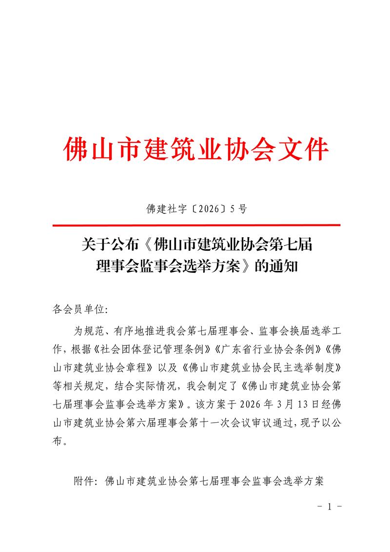 关于公布《佛山市建筑业协会第七届理事会监事会选举方案》的通知(佛建社字〔2026〕5号)