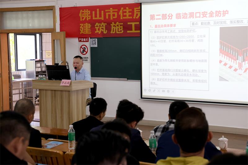 本次培训特邀我省、市安全专家库专家李志高高级工程师担任主讲老师。课堂上,李工结合全市安全生产大检查中暴露出的突出问题、典型隐患案例事故剖析与佛山本地监管实际,围绕复工复产安全条件核查、重大事故隐患判定标准、施工现场风险辨识、临时用电与机械设备安全管理、应急处置与警示教育等重点内容进行系统讲解。