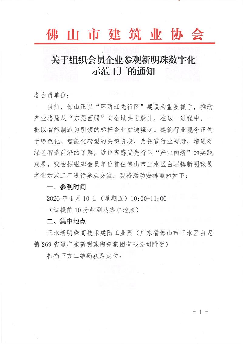 关于组织会员企业参观新明珠数字化示范工厂的通知(2026/04/03)