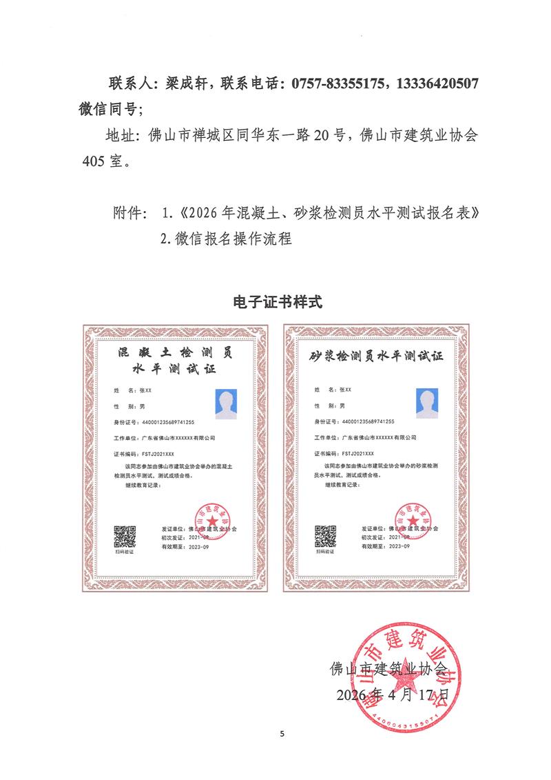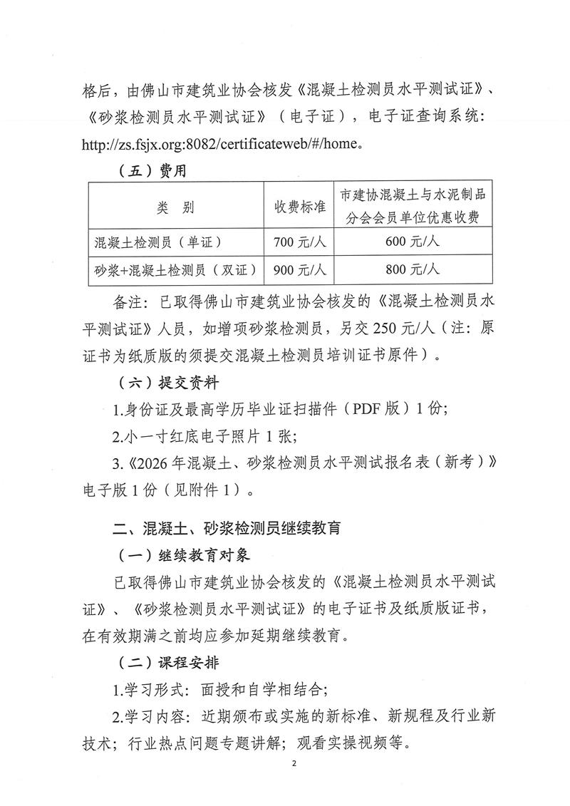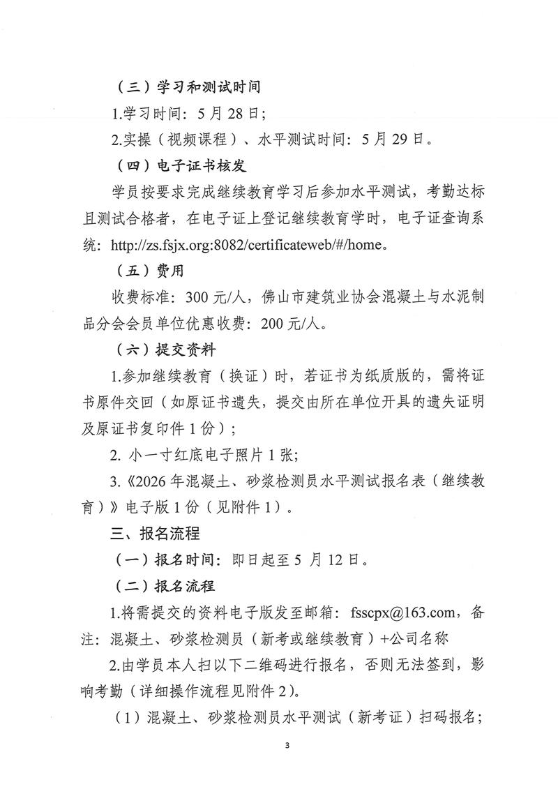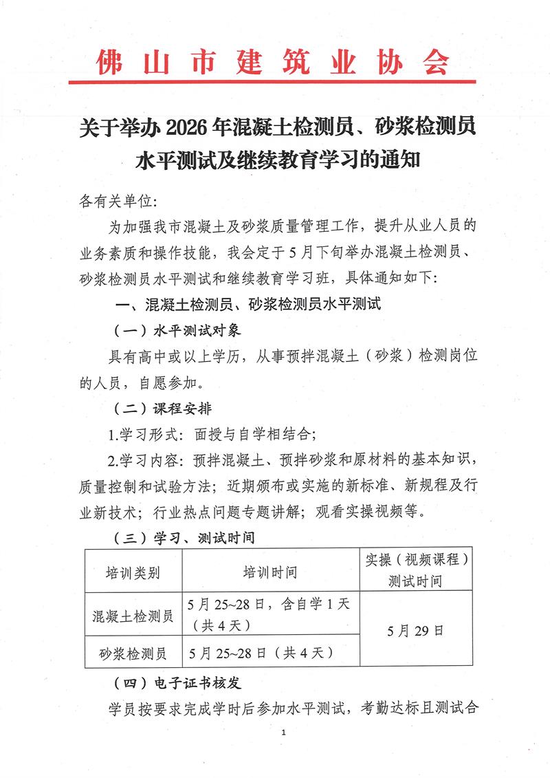 关于举办2026年混凝土检测员、砂浆检测员水平测试及继续教育学习的通知(2026/04/17)